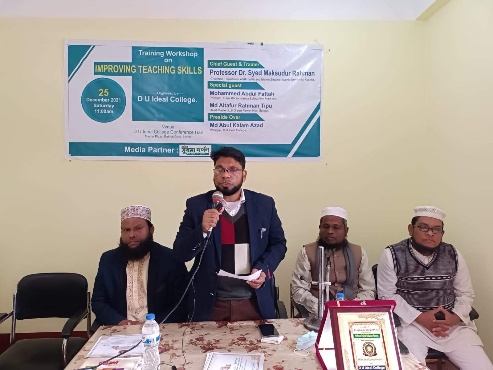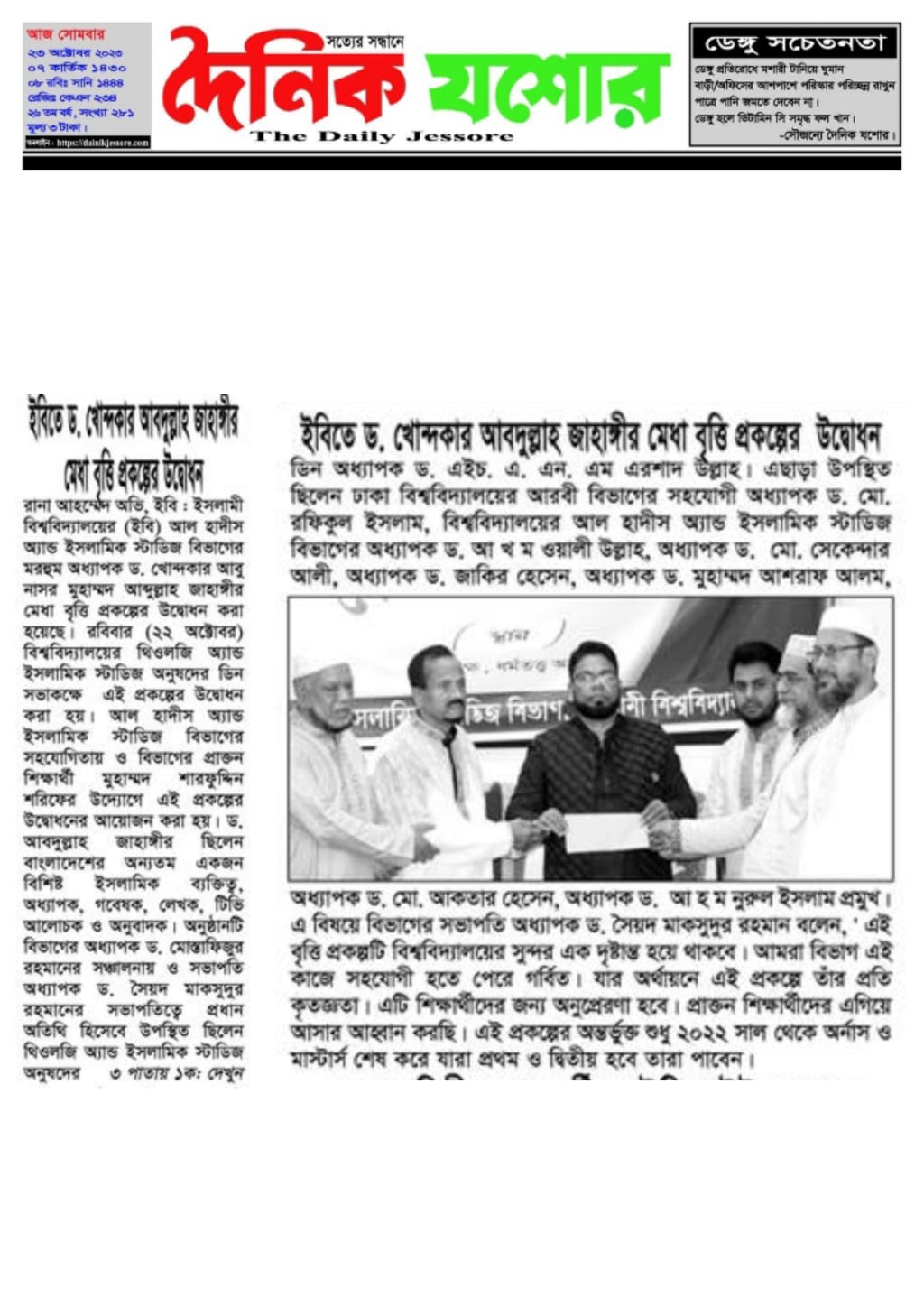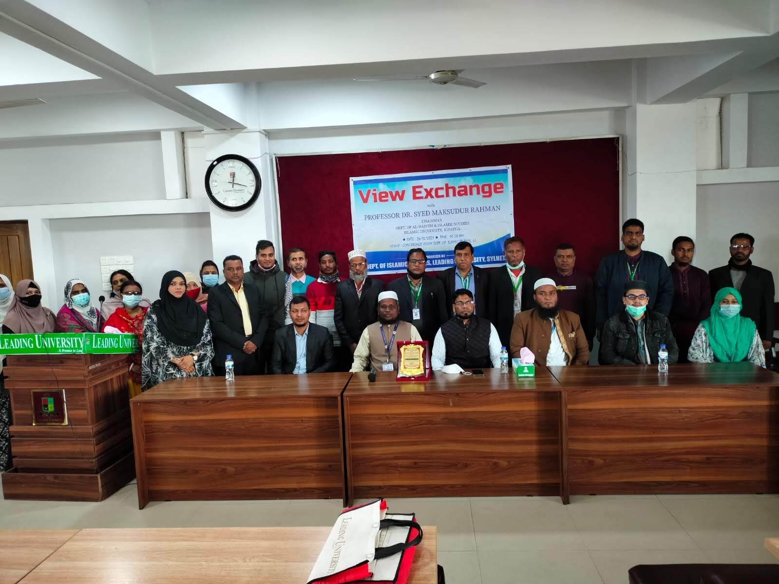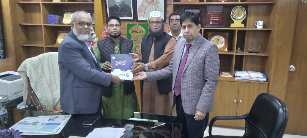 ইসলামী বিশ্ববিদ্যালয়ের মাননীয় কোষাধ্যক্ষ প্রফেসর ড. মো: আলমগীর হোসেন ভূঁইয়া কে আল- হাদীস এন্ড ইসলামিক স্টাডিজ অ্যালামনাই পুনর্মিলন ২০২৩ এর স্মারক কপি তুলে দিচ্ছেন স্টিয়ারিং কমিটির আহ্বায়ক প্রফেসর ড. সৈয়দ মাকসুদুর রহমান। উল্লেখ্য এ সময় উপস্থিত ছিলেন অ্যালামনাই পুনর্মিলন স্মারক এর সম্পাদক প্রফেসর ড. মো: সেকেন্দার আলী।